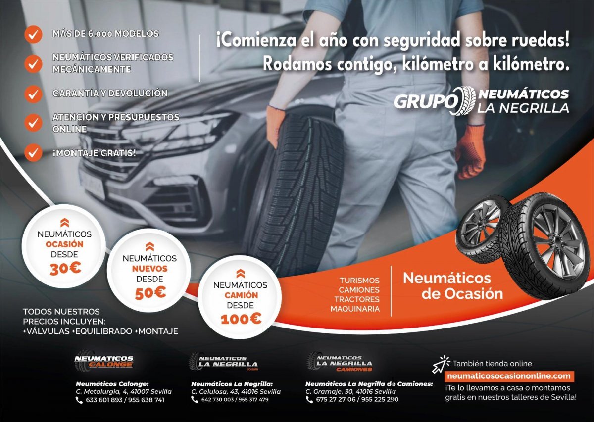 Neumáticos Sevilla La Negrilla es un taller de neumáticos especializado en cubiertas nuevas y de ocasión para coches, furgonetas y todo tipo de vehículos. También prestamos servicios de alineado de dirección y mecánica rápida. ¡Consúltanos sin compromiso o visítanos sin cita previa en C/ Celulosa, 43 (Polígono Industrial La Negrilla)!