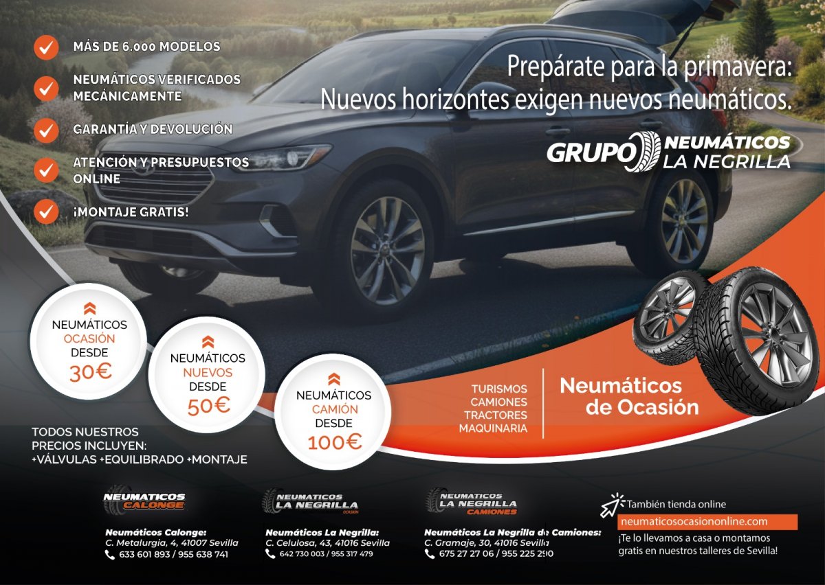 Neumáticos Sevilla La Negrilla es un taller de neumáticos especializado en cubiertas nuevas y de ocasión para coches, furgonetas y todo tipo de vehículos. También prestamos servicios de alineado de dirección y mecánica rápida. ¡Consúltanos sin compromiso o visítanos sin cita previa en C/ Celulosa, 43 (Polígono Industrial La Negrilla)!